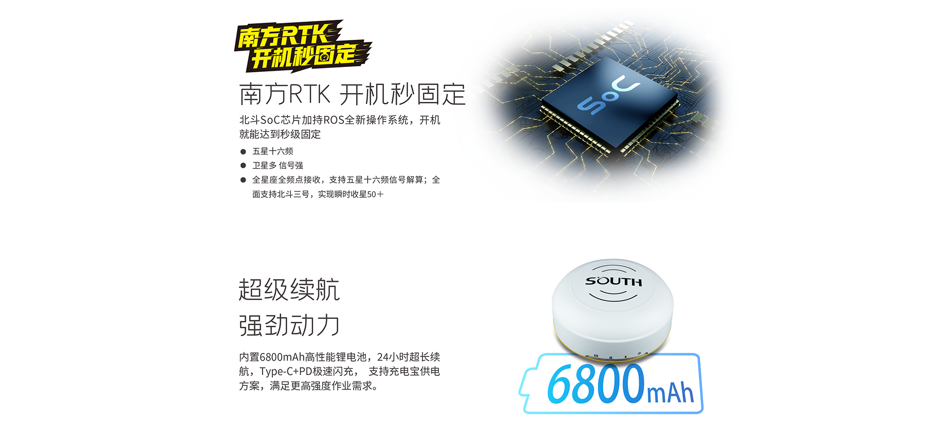 星耀遠航,鑄就測繪夢。星航2的北斗SoC芯片加持ROS系統(tǒng),融合全星全頻多頻點解算技術,一步到位,開機即達開機秒固定。為用戶帶來快捷高校的作業(yè)體驗感。