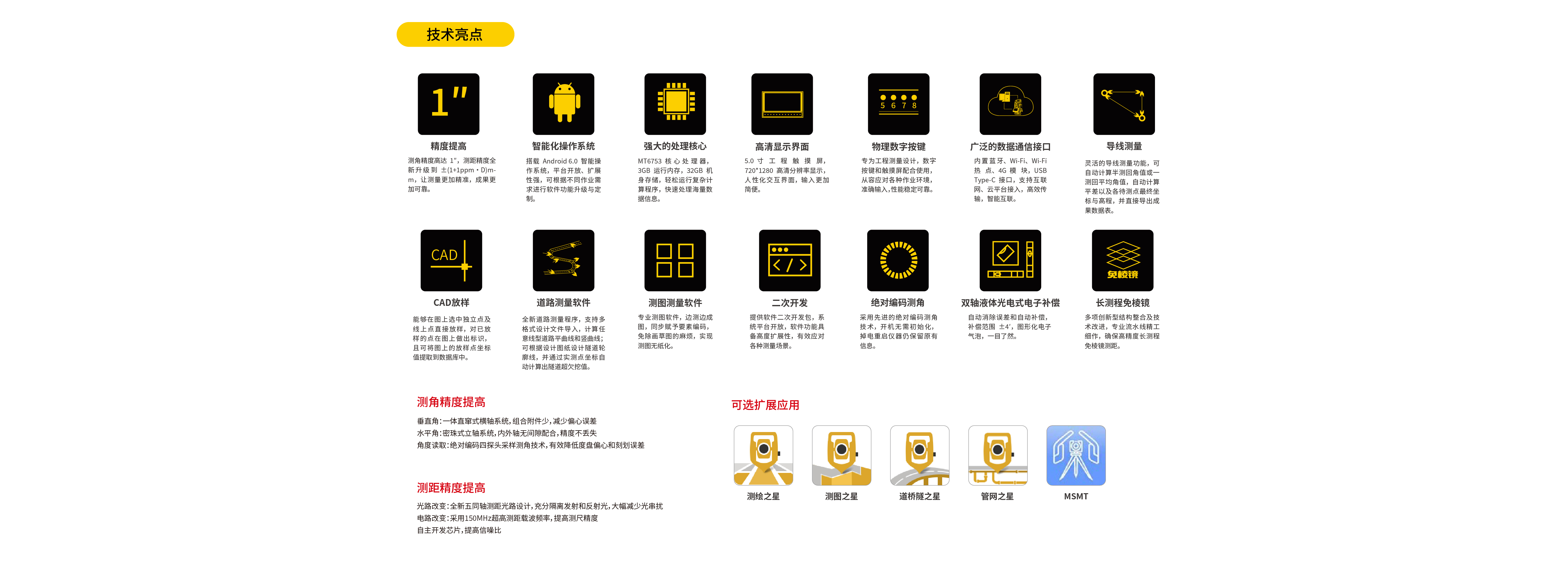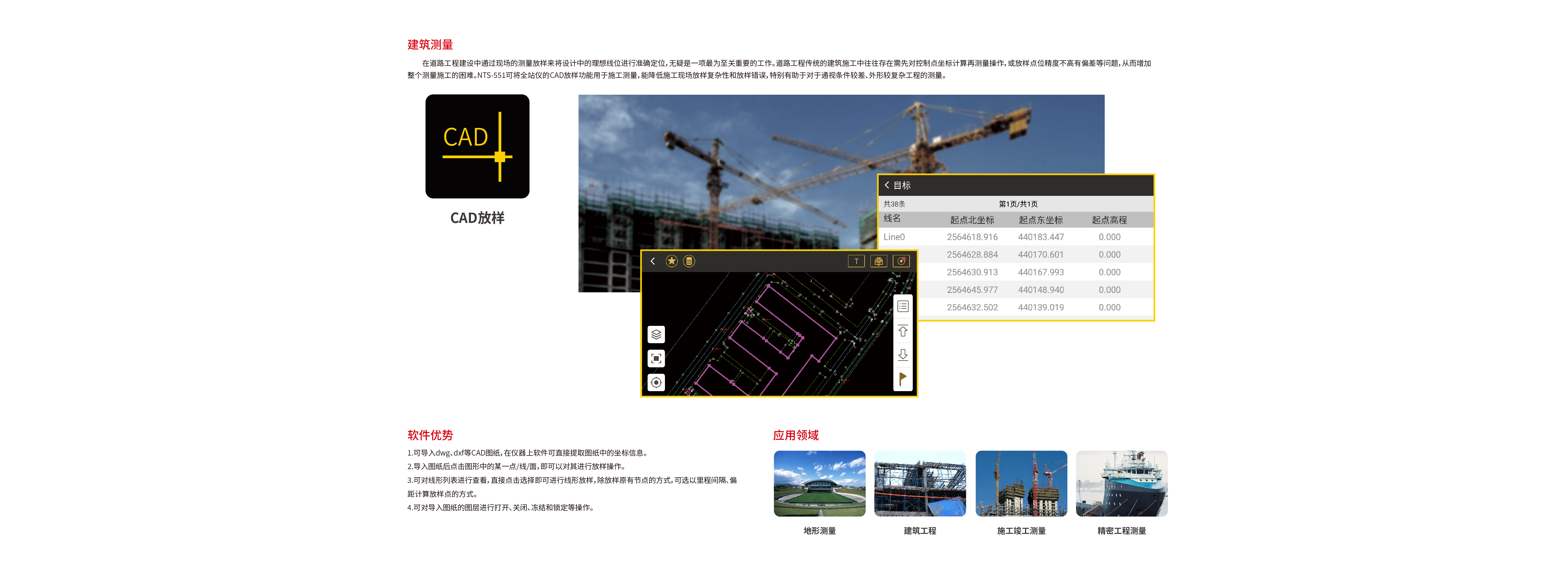 NTS-551R10國產(chǎn)高精度智能全站儀,依托南方二十多年光電儀器生產(chǎn)制造經(jīng)驗(yàn),順應(yīng)時(shí)代發(fā)展,滿足新基建要求,兼顧1″高精度的同時(shí)搭配智能安卓操作系統(tǒng)讓測量更便捷,更高效。并且南方龐大的軟件生態(tài)賦予NTS-551更廣泛的應(yīng)用,讓其在各種領(lǐng)域真正開啟1″智能新時(shí)代。