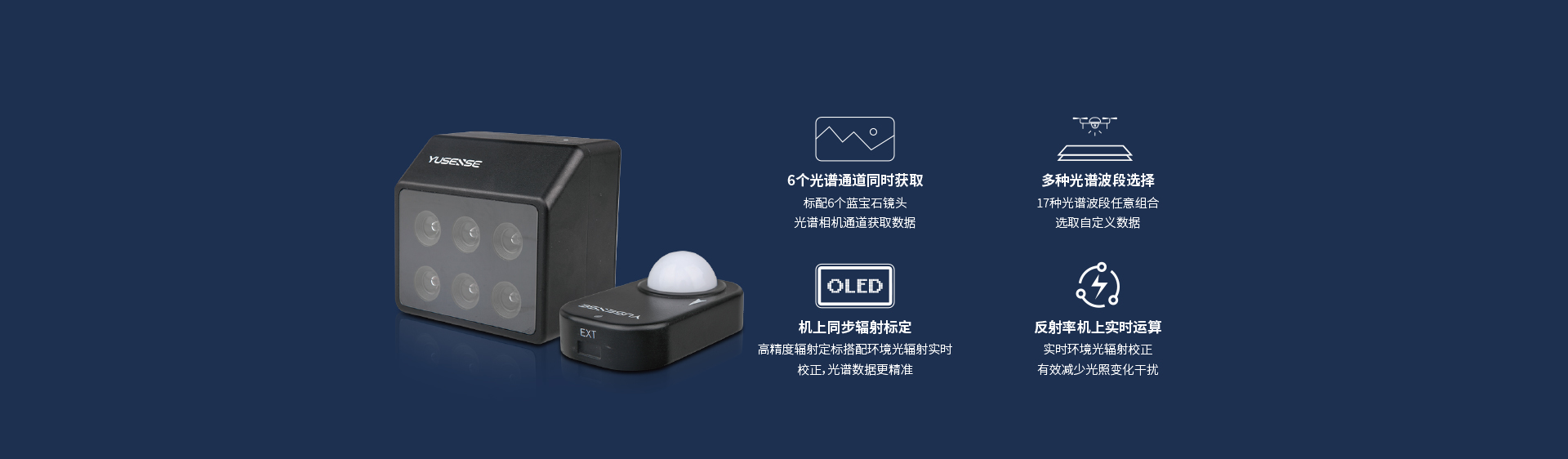 高精度光譜標定、輻射標定、幾何校正;標配下行光傳感器(DLS)