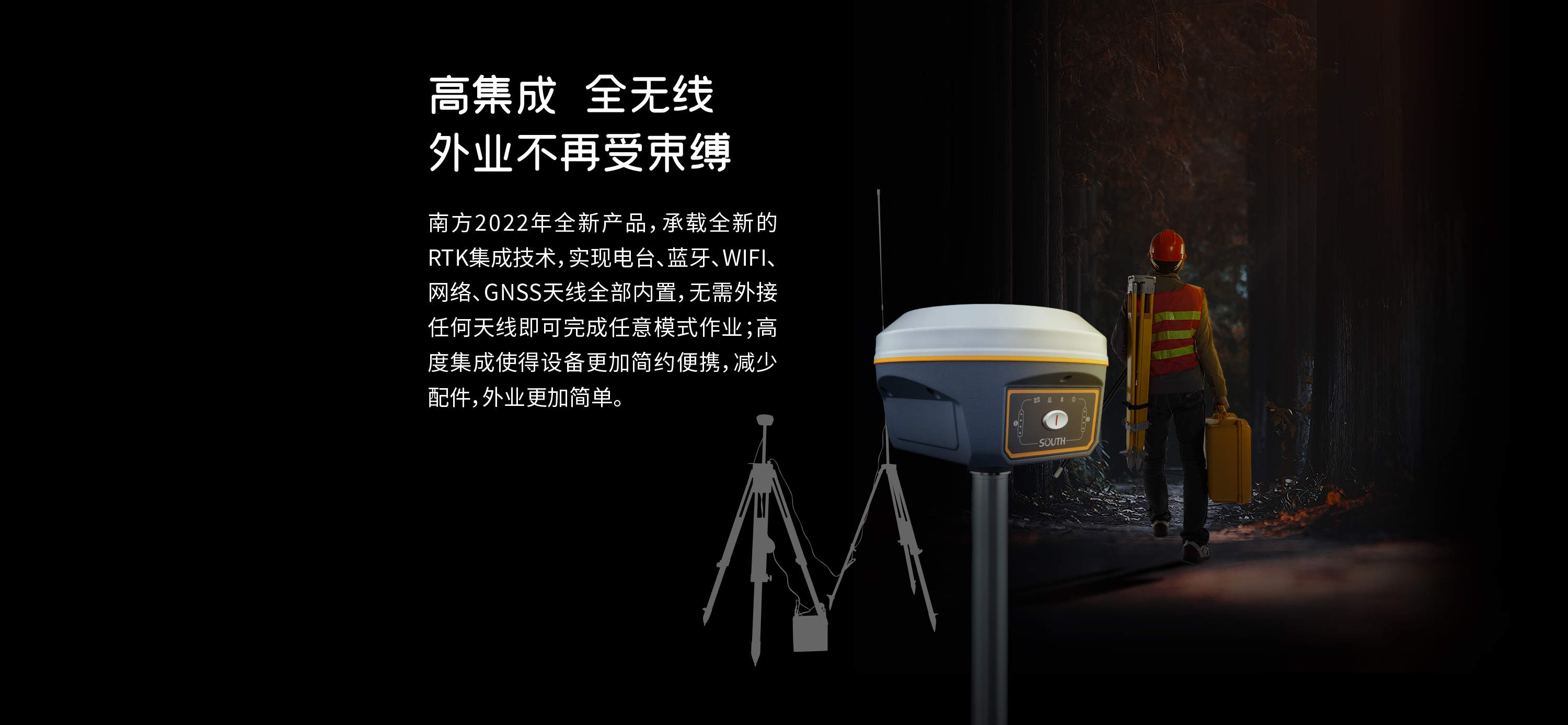 南方2022年全新產(chǎn)品,承載全新的RTK集成技術(shù),實現(xiàn)電臺、藍(lán)牙、WIFI、網(wǎng)絡(luò)、GNSS天線全部內(nèi)置,無需外接任何天線即可完成任意模式作業(yè);高度集成使得設(shè)備更加簡約便攜,減少配件,外業(yè)更加簡單。