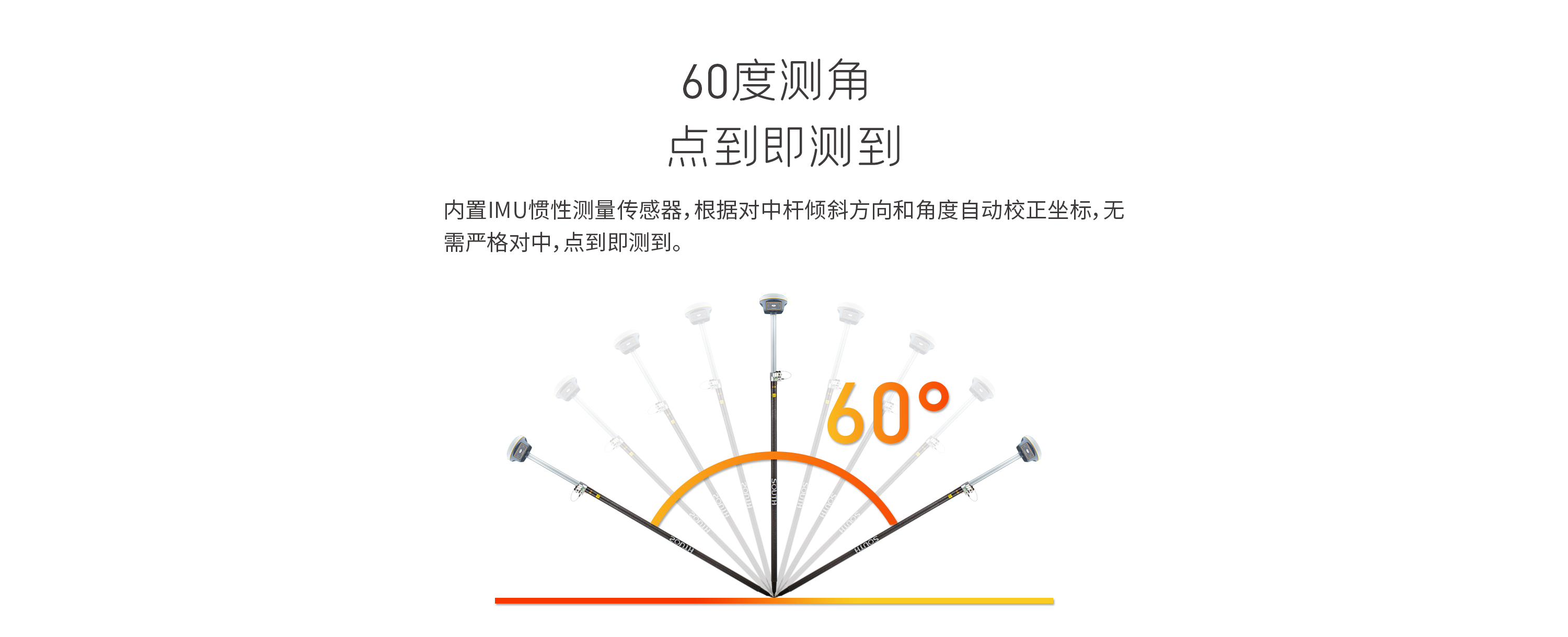 內(nèi)置IMU慣性測量傳感器,支持慣導(dǎo)傾斜測量功能根據(jù)對中桿傾斜方向和角度自動校正坐標(biāo)。